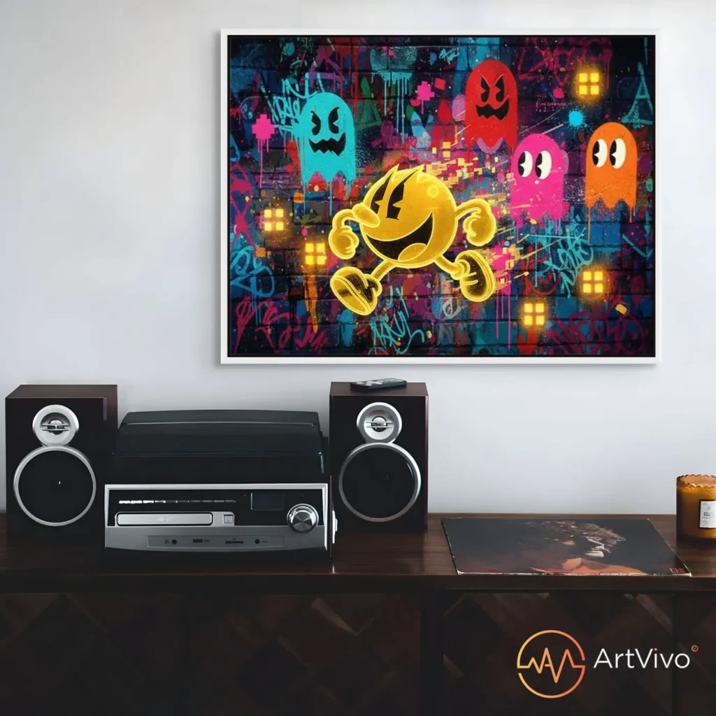 Obras impresas sobre lienzo con toques manuales únicos que, al verlas, cobran vida gracias a la realidad aumentada. Interactúa con ellas mediante gestos, personaliza tu experiencia y conviértete en parte de la historia que cuentan.