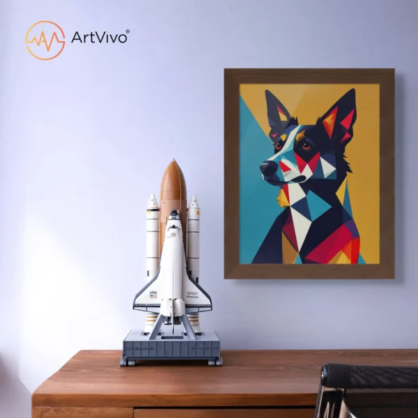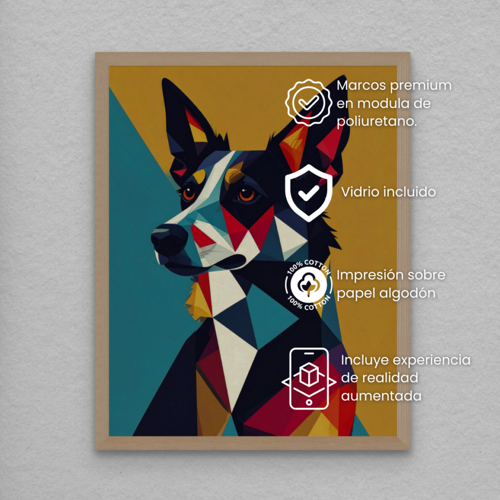 Lo que lo hace ArtVivo es la magia tecnológica: al escanear el QR, activas la realidad aumentada y el perro cobra vida con una animación suave y encantadora. Un detalle sutil, pero memorable: el tipo de obra que la gente mira dos veces, sonríe… y pregunta “¿cómo lo hiciste?”. Si estás buscando en Colombia posters decorativos, arte moderno enmarcado o arte con realidad aumentada, Border Cubic es una opción perfecta para empezar tu colección.